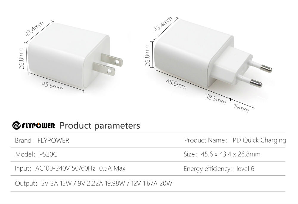 output:5V 3A 15W/ 9V 2.22A 19.98W/ 12V 1.67A 20W Max