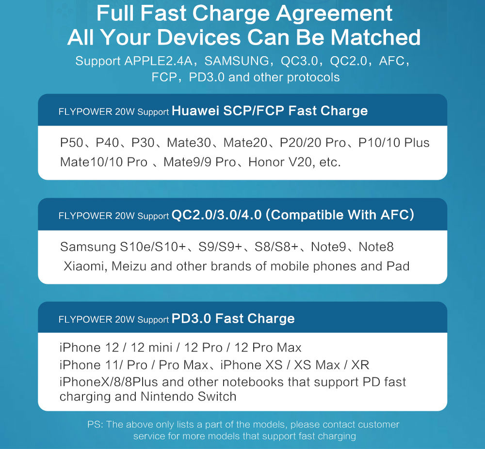 Supported Protocols:APPLE2.4A QC2.0 AFC FCP PD3.0 QC3.0