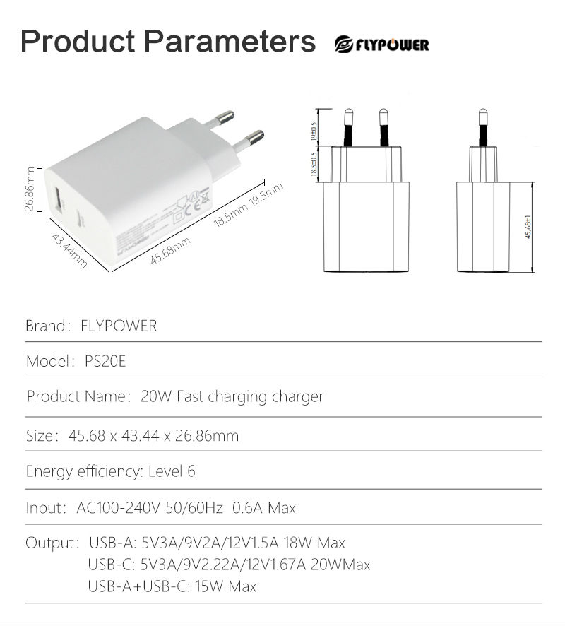 Output:USB-C: 5V3A/9V2.22A/12V1.67A 20WMax