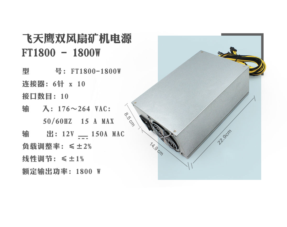 1800W 10头 双风扇矿机电源