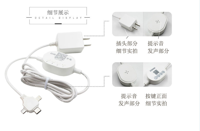 在设计上,出于使用方便的考虑,我们把共享充电器的充电头给改成了USB接口,这样当顾客要使用的时候,将这条充电线的一头接在电脑的USB接口上就可以充电了,使用更加方便,同时也节省了成本。