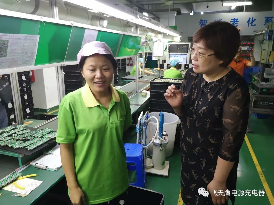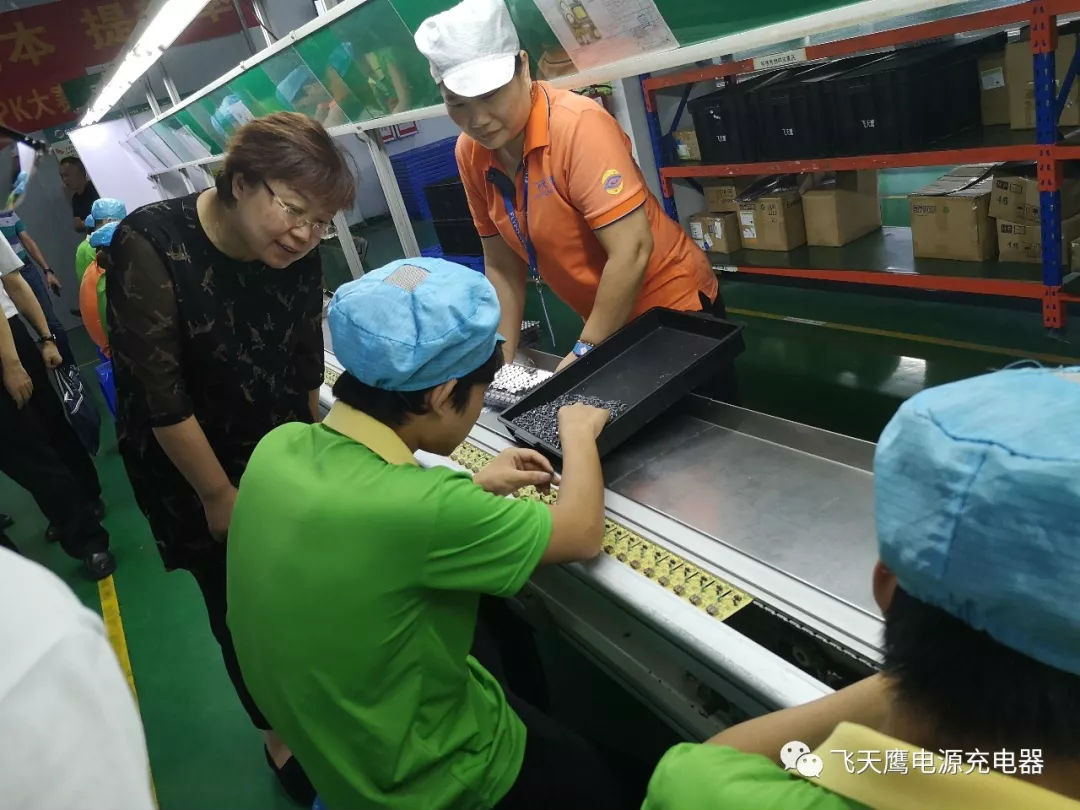20 years' focus on R&D and manufacturing of power supply为贯彻落实党的十九大提出的“坚决打赢脱贫攻坚战”总体决策部署,2019年8月16日,国务院扶贫办开发指导司(副巡视员张洪波 余军 徐东亮)与广东省扶贫办(宋宗约陈荣 唐咸武)、省人社厅(卢健秋)、深圳市扶贫办和人社局领导莅临飞天鹰集团下属公司深圳市飞天鹰科技有限公司检查调研就业扶贫工作。