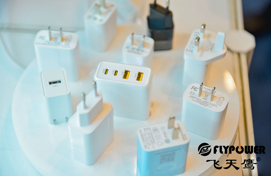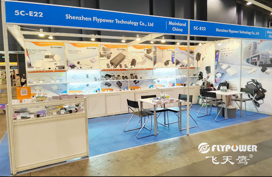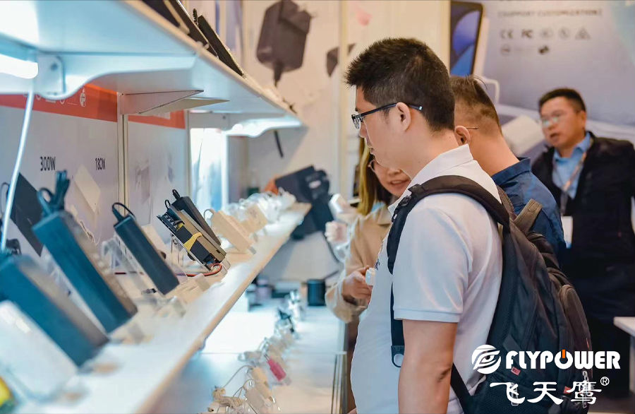 子产品展汇聚全球创新电子科技及产品,飞天鹰也参与了这场电子产品盛会,作为生产和研发电源适配器的国家高新技术企业,展会中飞天鹰展示了功率涵盖5W-300W的多种电源适配器、充电器产品。