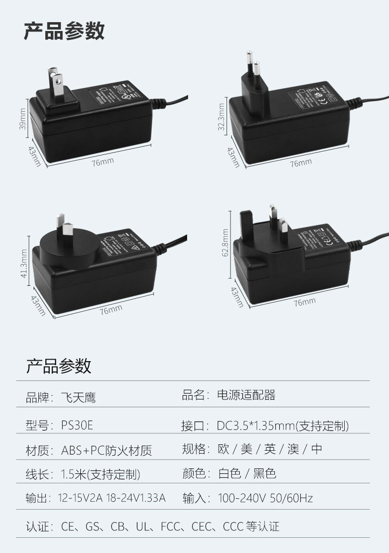 20 years' focus on R&D and manufacturing of power supply飞天鹰电源适配器PS30E