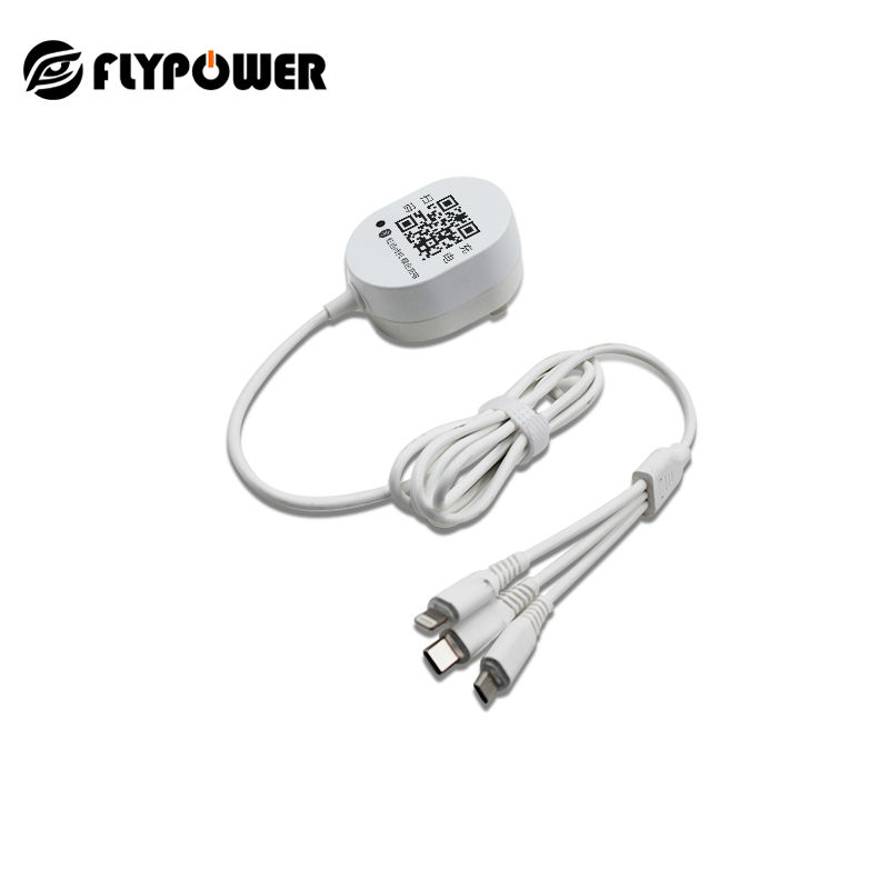 共享充电线式的手机共享充电,这种手机共享充电通常放置在酒店、会所一类的客房中,需要附近有插座,无内置电源成本低。手机的充电接口各个品牌五花八门,前台很难成功提供对应的充电服务。而且前台自备的充电器数量很少,难以解决用户的充电难题。像飞天鹰这款手机共享充电器包含三个充电接口分别对应苹果、安卓与Type-C,几乎涵盖了市面上所有的手机、平板接口。同样无需繁琐的app与押金,扫码即可充电。这类手机共享充电既为商家提供了额外收入又解决了客户的充电难题,提升了客户入住的满意度。