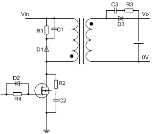 一、场效应管D级与输入正之间加RCD。一般选择场效应管的反向恢复时间要比二极管D1慢2~3倍,以避免形成直通电流,此电流会产生很强的磁场,可增大输出噪声干扰,所以可人为的通过栅极电阻R4来减慢开关管的开关速度。为了不影响关断速度可以在栅极电阻并联一个二极管D2如图1所示。