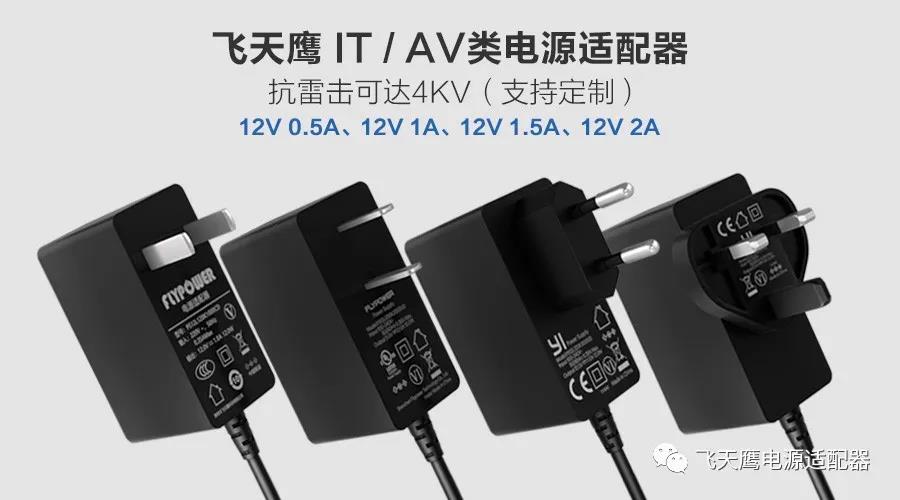 飞天鹰电源适配器厂家这几款12V0.5A、12V1A、12V1.5A、12V2A电源适配器不仅可以给路由器、机顶盒充电,还可以给显示屏、医疗仪,游戏机、监控 安防系统、 数码机、投影仪等IT/AV类设备充电,厂家直售,价格便宜!