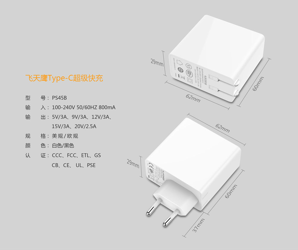 20 years' focus on R&D and manufacturing of power supply深圳飞天鹰科技是国际高新技术企业,有着15年的电源研发生产经验?目前有超过200人的技术研发团队,月产能在300万只以上,是目前国内主要的PD快充充电器生产厂家之一,规格多种,认证电源,军工品质,值得信赖。