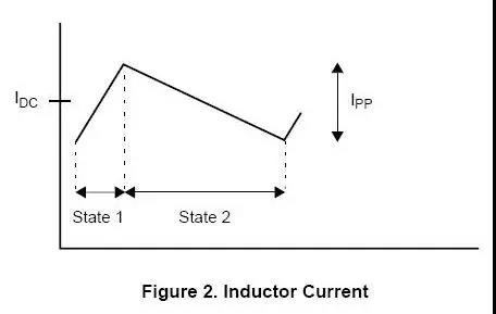 因此,当电感上的电压为正时(状态1),电感上的电流就会增加;当电感上的电压为负时(状态2),电感上的电流就会减小。通过电感的电流如图2所示: