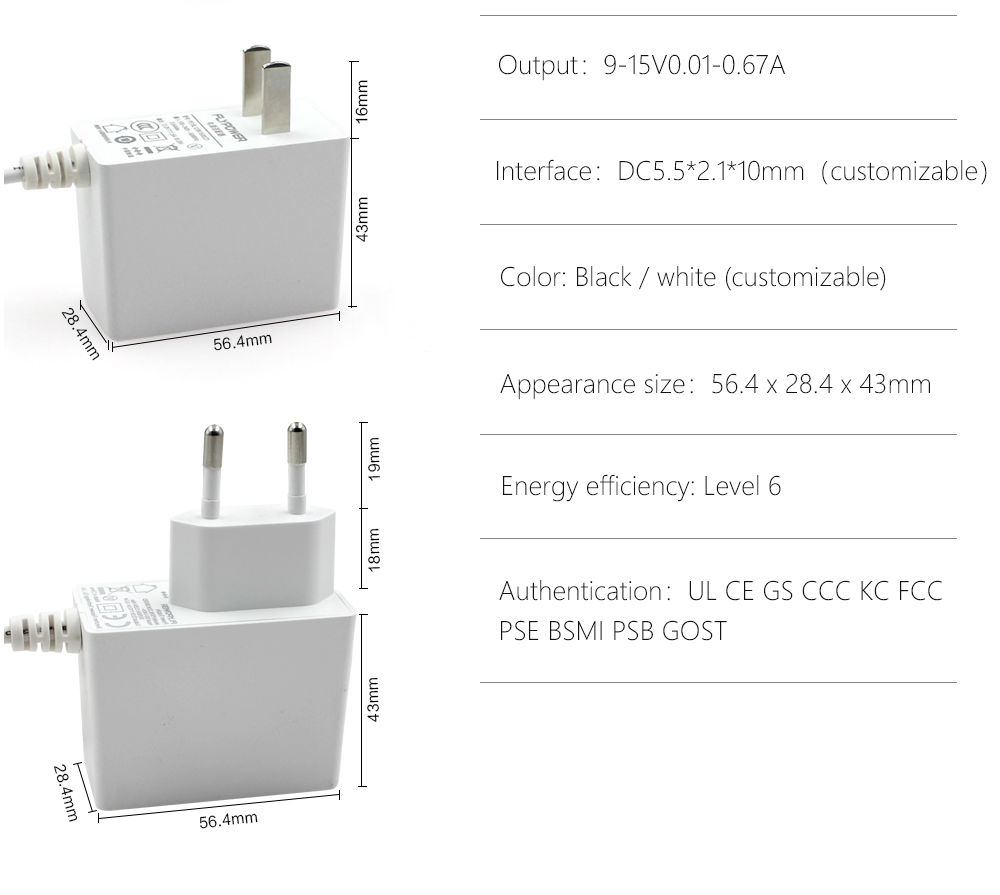 Output:9~15V 0.01~0.67A 6W Max