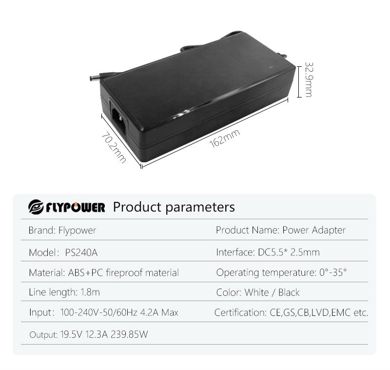 Output:30V8A 24V10A 20V9A 20V11.5A 19.5V12.3A 26V9.23A 240W max